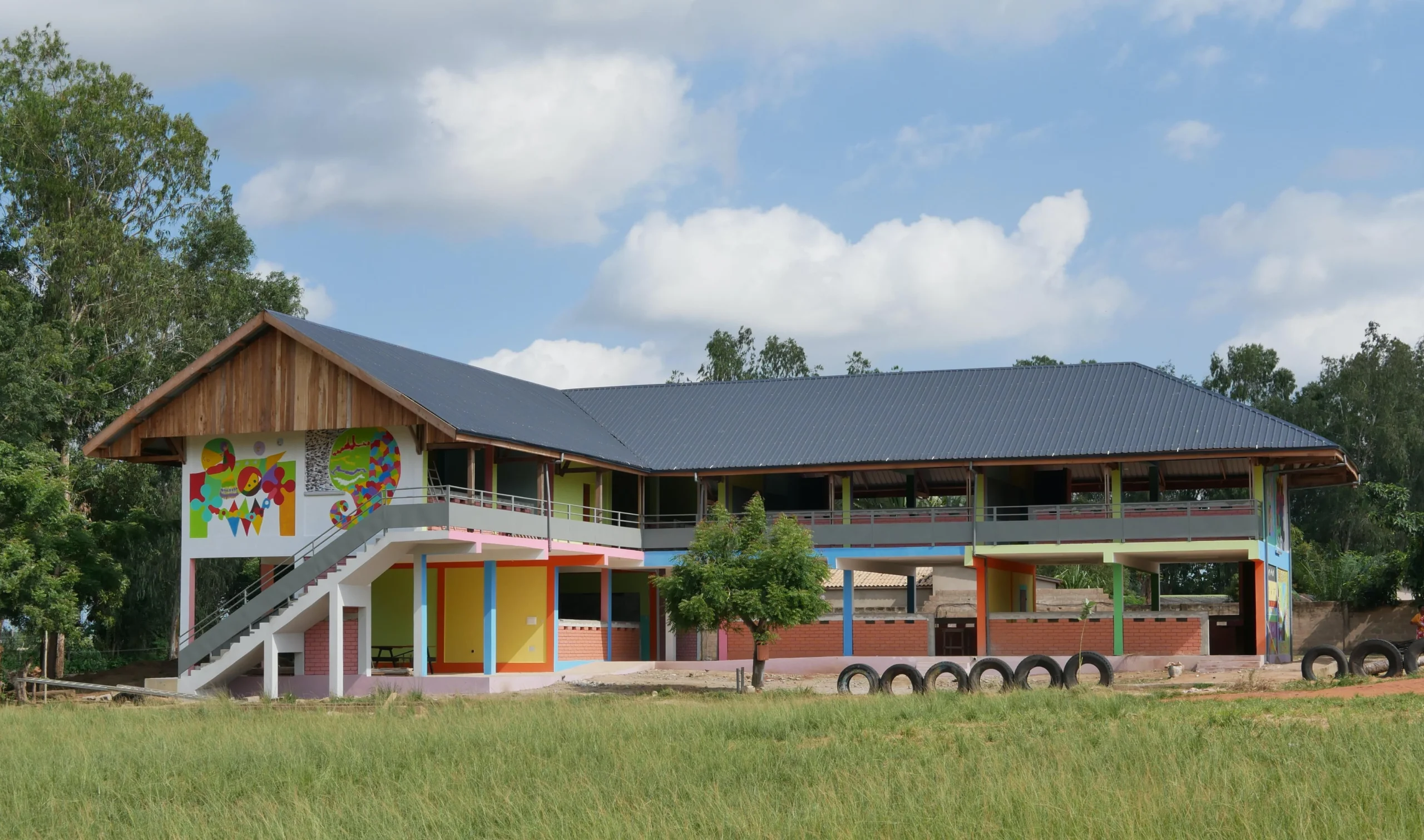 Le programme consistait à la réhabilitation d’un bâtiment traditionnel édifié en « Banco » et la construction de neuf classes de collège en utilisant la même technique.