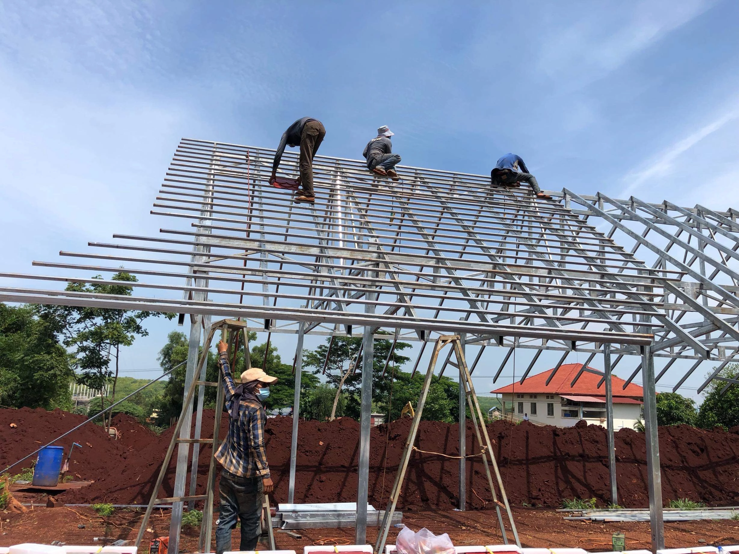 Projet 2016 Construction d’un Centre d’expérimentation pour le bambou à Tak Mao dans le but de réhabiliter le Bambou pour les constructions au Cambodge. Encrée sur une dalle béton, toute la construction est en bambous : structure, couverture, planchers, cloisons, murs extérieurs, fenêtres, portes, escalier. Sa construction s’est effectuée en relation avec les élèves de l’Ecole d’Architecture de Phnom Penh.