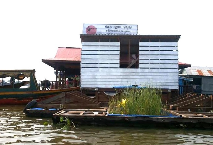 Projet 2006 Construction d’un restaurant flottant et de toilettes avec filtration par filtres plantés verticaux et horizontaux au village flottant de PREK TOAL sur le TONLE SAP en partenariat avec l’ONG OSMOSE.